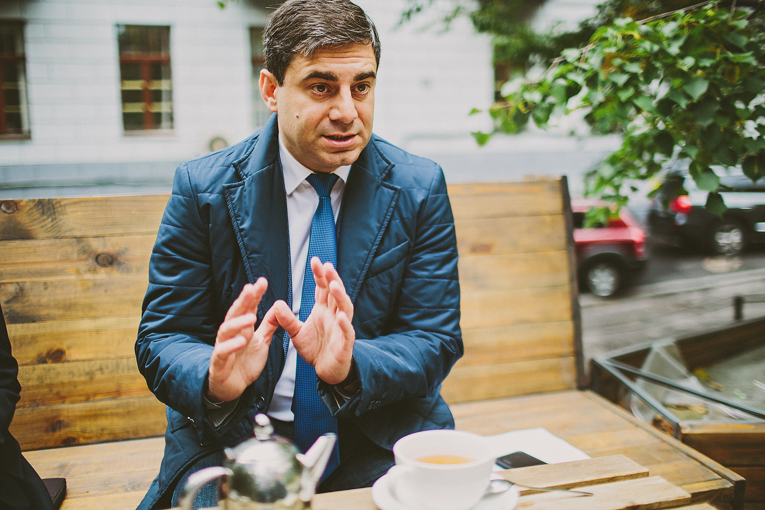 Очільник Комітету з прав людини Верховної Ради практично одразу погодився на розмову, місцем обрали соціальне кафе. До інтерв’ю також приєдналася Ірина Суслова, колишня очільниця підкомітету з питань гендерної рівності парламенту та теперішня радниця Дмитра Лубінця.